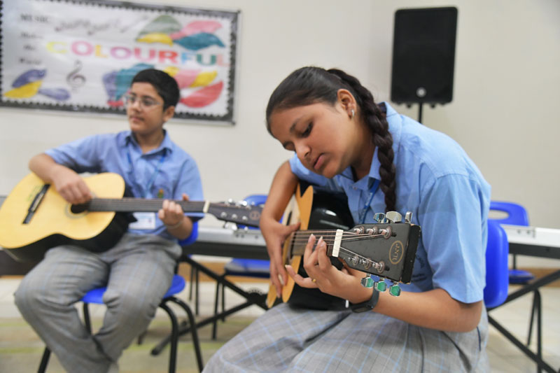 Music education prepares students to develop the basic mental skills and capabilities. Playing instruments enchances fine motor skills and cultivates better thinking skills. Music is a true demonstration of traditions, community culture, aspirations and accomplishments of humankind. All our jaypians are learning to play instruments such as Casio, Guitar, Saxophone, Bongo, Tabla, Flute and many more. A school Band team has been established where in the children are excelling, creating their own benchmarks.